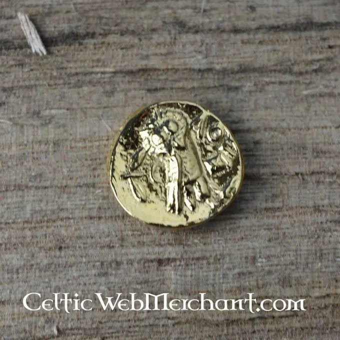 Cette pièce est en argent plaqué en étain. Il a un diamètre d’environ 2 cm