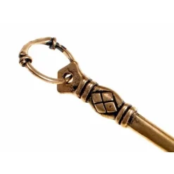 Cette cuillère oreille Viking décorée est basé sur un original 9ème-10ème siècle creusée dans la tombe 660 dans la ville viking de Birka. cuillères d’oreille étaient des objets cosmétiques et sont le plus souvent trouvés dans des tombes femelles. Les femmes ont souvent effectué des pincettes avec eux. Cette cuillère à oreille est décorée parce qu’elle ne sert pas seulement comme un objet esthétique: il avait des fonctions décoratives aussi bien et a été porté à la ceinture comme une décoration.