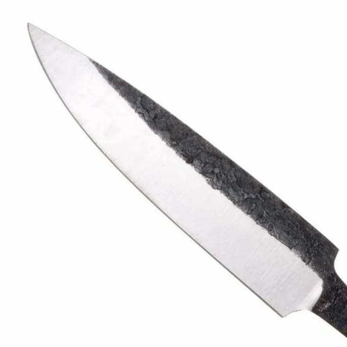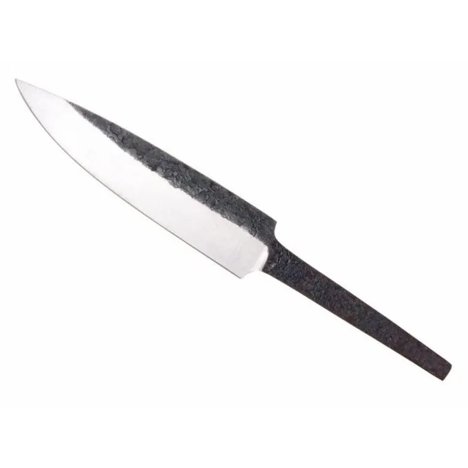 Cette lame de couteau est une réplique d’un original neuvième-dixième siècle trouvé dans Haithabu. Ce type de couteau a été principalement produit par les Anglo-Saxons autour de cette période, mais négociés dans le monde entier. Cette lame de couteau à la main est fabriqué en acier au carbone 1085 et trempée à une dureté de 54-56 HRC.