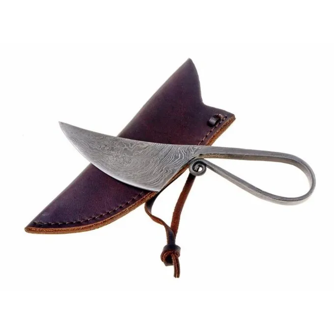 Matériau: acier damassé en acier au carbone de type acier AISI 1095 et AISI 4340, cuir / / Longueur du couteau: 15 cm / / Largeur du couteau: 2,5 cm / / Longueur de la lame: 7,5 cm / / Livraison incl. gaine / / Basé sur un original historique