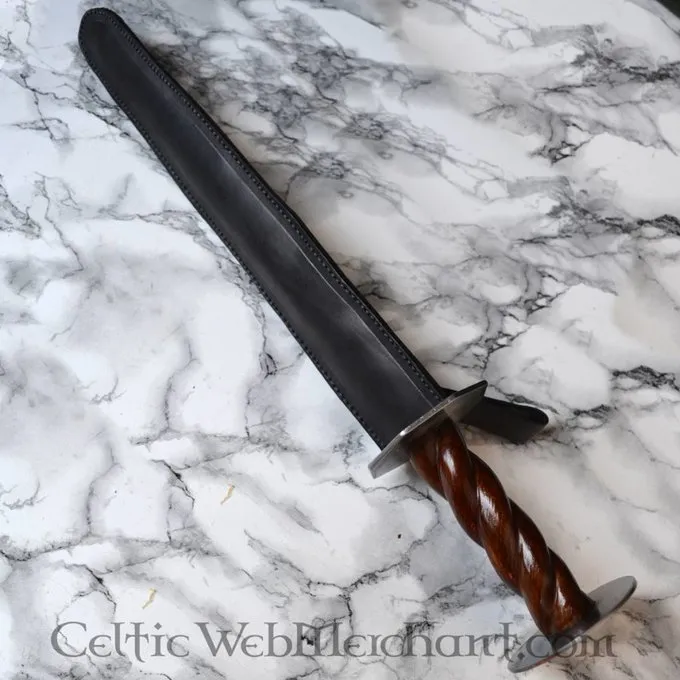 Cette dague est une réplique d’un typique 14e siècle poignard. Il a été porté par de nombreuses personnes, de commerçant de chevalier. Il a été principalement utilisé pour l’auto-défense, mais il pourrait également être établi dans la bataille. Cette dague est entièrement fait main et adapté aux batailles de reconstitution. Sa longueur est de 42 cm et il a une longueur de lame de 30 cm.