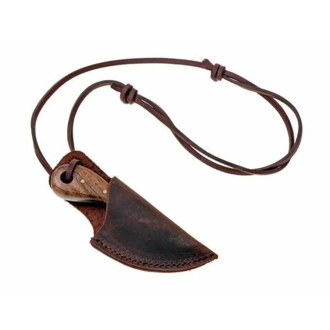 Ce couteau forgé à la main est faite de 176 couches d’acier damas en AISI 1095 et de l’acier AISI 4340 et est tempérée à une dureté de 56-58 HRC. Ce couteau a une poignée de noix. Il peut être porté avec un lacet de cuir autour du cou et est livrée avec un fourreau en cuir.