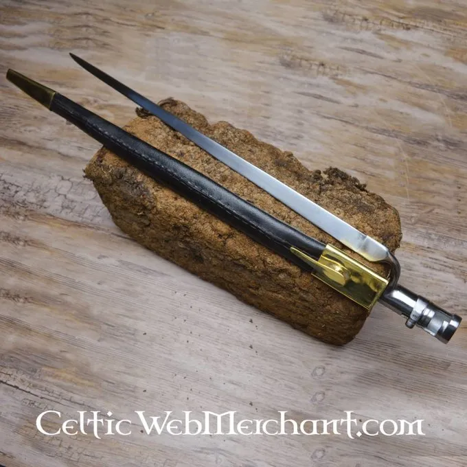 Ce modèle baïonnette a été produit en Angleterre 1853-1870. Il était jusqu’en 1875 dans l’armée britannique utilisé partout dans le monde. Cette baïonnette a été conçu pour s’adapter appelé Enfield fusil modèle 1853, aussi appelé P53 Enfield. Il a été utilisé pendant la guerre de Crimée, la guerre civile, la guerre en Nouvelle-Zélande et les mutineries indiennes,. La baïonnette est une conception typiquement britannique, il réfléchit sur le parcours avec une fermeture lock-ring. Cette baïonnette est livré avec un étui en cuir.