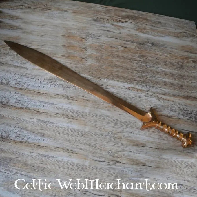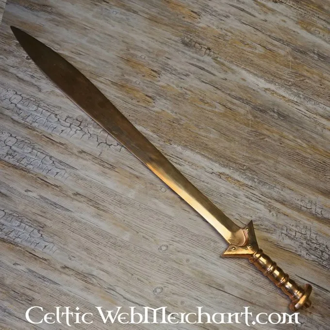 Détails de produit: Longueur: 82 cm / Longueur de lame: 66 cm / Longueur de poignée: 16 cm / Poids: 1480 g / Type d’acier de la lame: Bronze / Tranchant afilé: semi-tranchant / Soie: soie complète avec pommeau / Recouvrement de la poignée: Bronze / Basé s
