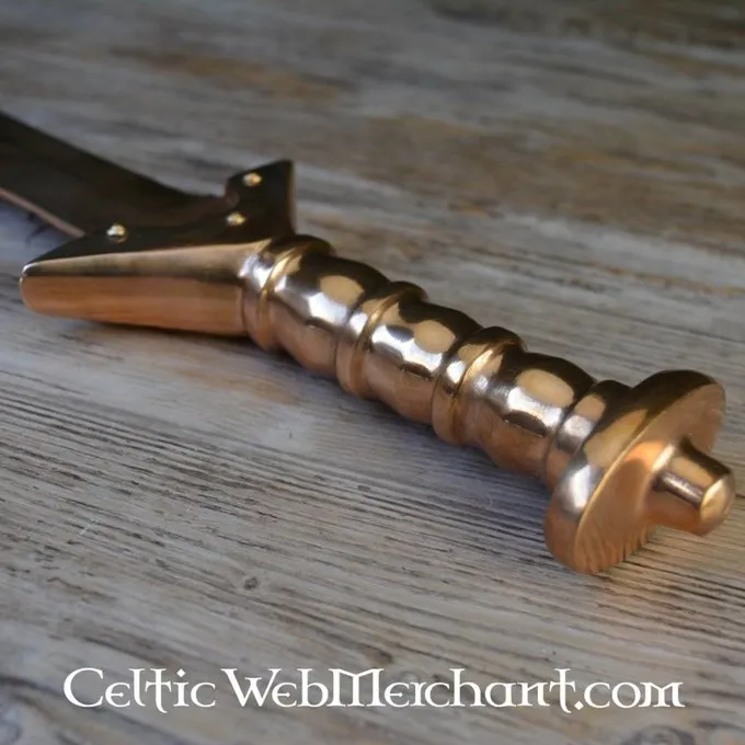 Cette épée de bronze est faite après un original de la culture Villanova, env. 900-700 av. Cette épée est entièrement faite de bronze, tout comme l’original. Il a une longueur de 61 cm avec une lame de 43 cm et il pèse environ. 1,8 kg.