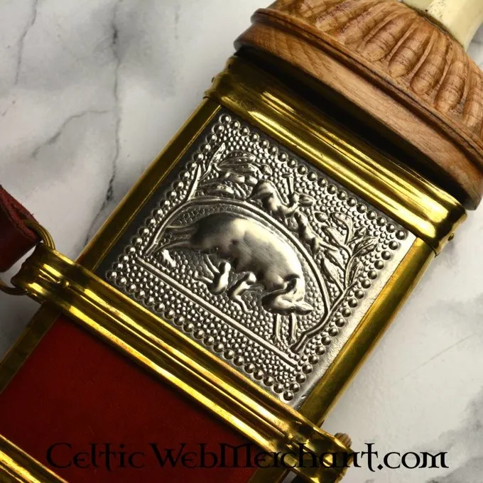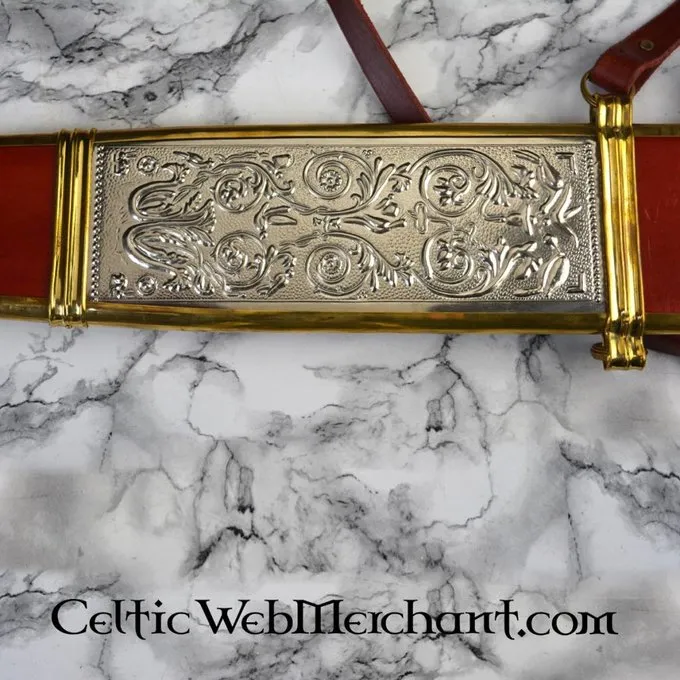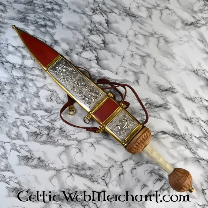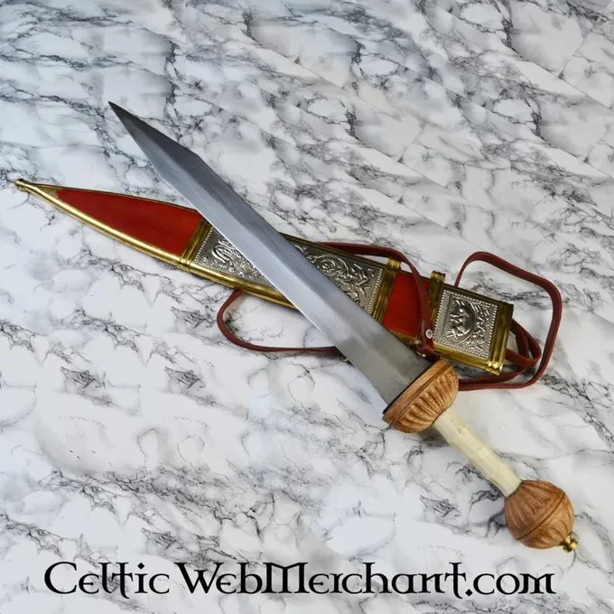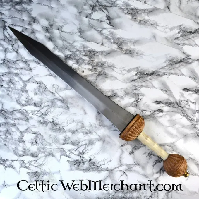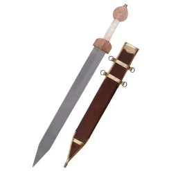 Ce gladius est une réplique d’un original creusé dans Fulham, Angleterre. Ce gladius luxueux est fait dans le style Mayence et a une poignée décorée en os et en bois. Les fourreaux sont faites de bois recouvert de cuir et décoré avec (argenté) raccord en laiton. Ce gladius a une lame semi-forte en acier à ressort FR45.