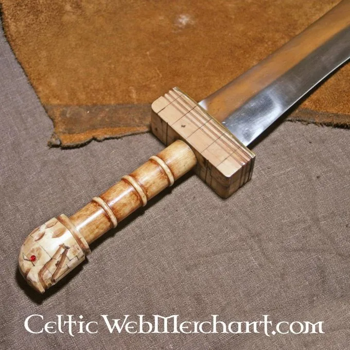 Cette épée a une longueur de 57 cm avec une lame de 40 cm qui se termine en une forme de feuille. La poignée est faite d’os. L’épée pèse 1 kg et est livrée avec un fourreau de luxe.