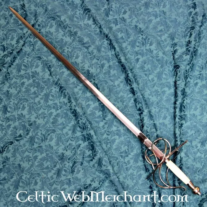 Cette rapière de luxe a une poignée d’os et est fait dans le style allemand. Sa longueur est d’environ. 114 cm, il a une lame de 36 cm et il pèse environ. 1 kg.
