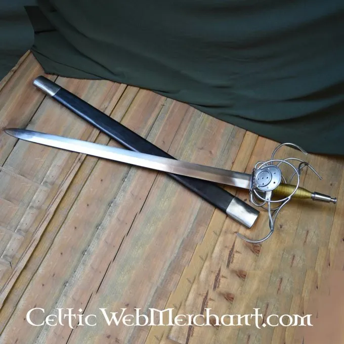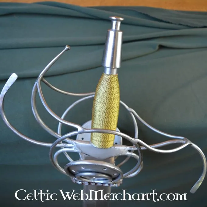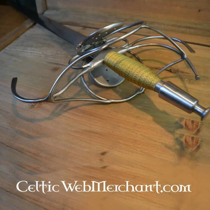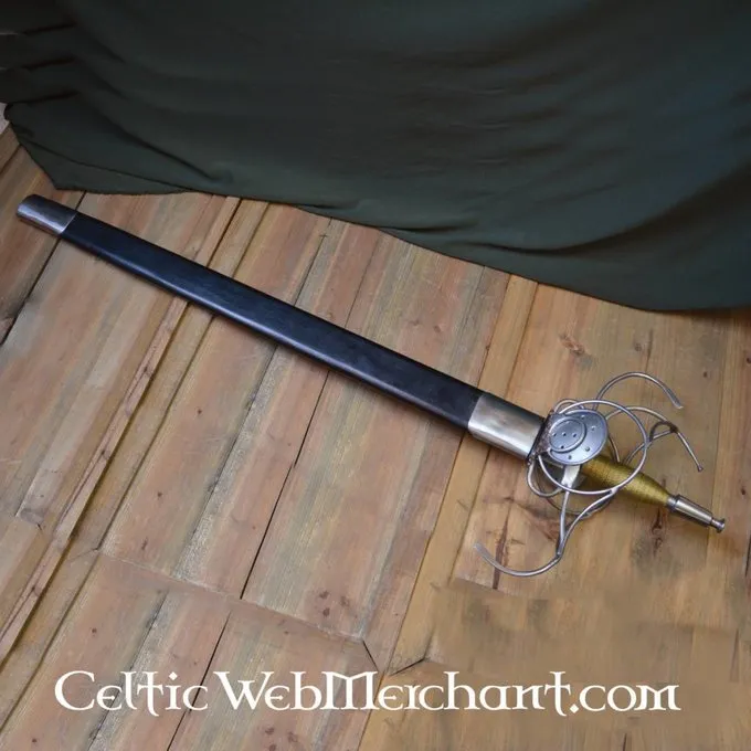 Ce est une réplique d’une rapière Pappenheimer allemand. Cette lance est livrée avec un fourreau en bois recouvert de cuir. Sa longueur est de 103 cm, il a une lame d’une longueur de 80 cm et sa largeur maximale est de 4,3 cm. Poids sans fourreau: 1,9 kg.