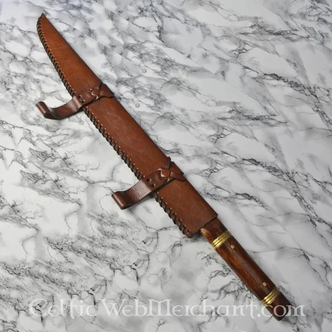 Détails de produit: Longueur: 73.5 cm / Longueur de lame: 55.5 cm / Longueur de poignée: 18 cm / Poids: 906 g / Type d’acier de la lame: EN45 carbon steel hardness 48 HRC. / Tranchant: semi-sharp / Soie: full tang construction / Poignée: wood / Basé…