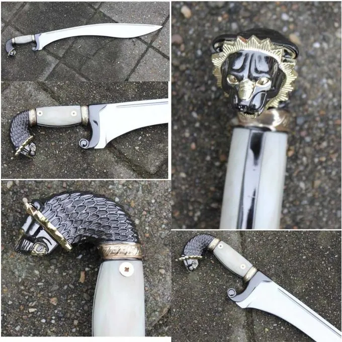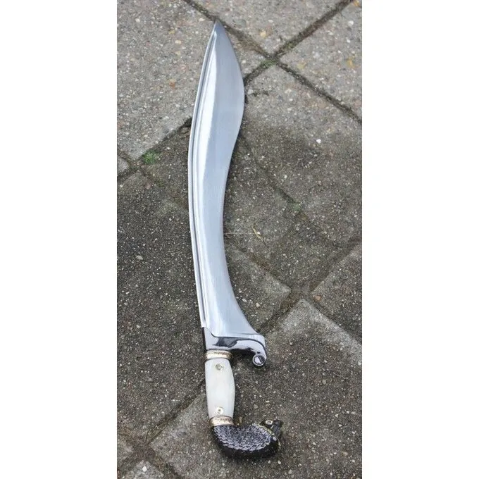 Détails de produit: Longueur: 74 cm / Longueur de lame: 58 cm / Poids: 1370 g / Type d’acier de la lame: acier inoxydable / Tranchant afilé: semi-tranchant / Soie: soie complète / Pommeau: vissé / Recouvrement de la poignée: laiton, os / Basé sur un origi