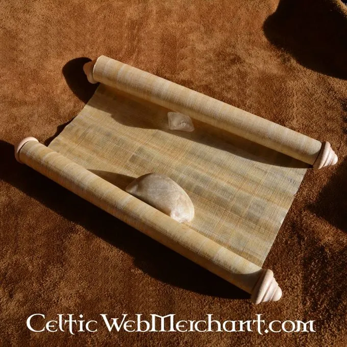 Cette feuille de papyrus est faite avec de la Cyperaceae du delta du Nil. Elle est fabriquée traditionnellement à la main. La feuille mesure 62x42cm. Elle est livrée sans reliure et sans porte-rouleau en bois.