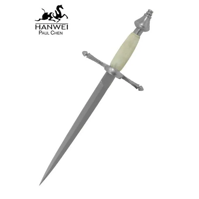 Détails de produit: Longueur: 43 cm / Longueur de lame: 28 cm / Longueur de poignée: 15 cm / Poids: 255 g / Type d’acier de la lame: 1055 carbon steel / Tranchant: sharp / Soie: full tang construction / Pommeau: screwed / Poignée: bone / Basé sur un origi