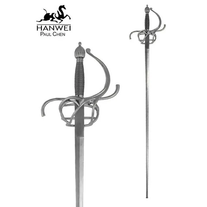 La rapière a été développé par Hanwei en raison d’arts martiaux et reconstitution. La rapière a une lame de bottte avec bouchon de sécurité sur ce point. Cette rapière est une réplique des rapières du 16ème siècle début qu’ils sont utilisés par la bourgeoisie et de l’aristocratie.