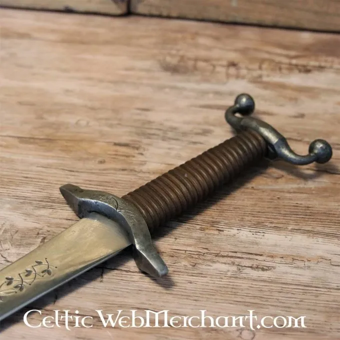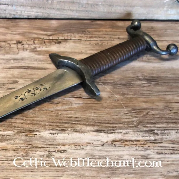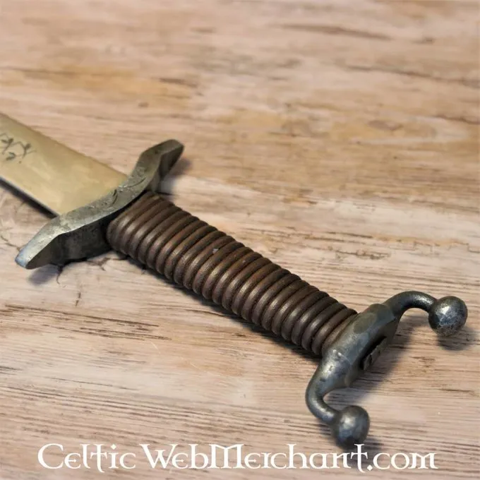 Cette épée est basée sur une épée anthropomorphe celtique de la période La Tène. La poignée a une forme humaine stylisée. Des épées similaires se trouvent dans toute l’Europe centrale et du Nord.