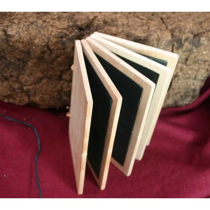 Cette tablette de cire se compose de cinq tablettes. La cire est faite de cire d’abeille et est noire. Elle mesure 14 x 9 cm et est livrée avec un sac en coton.