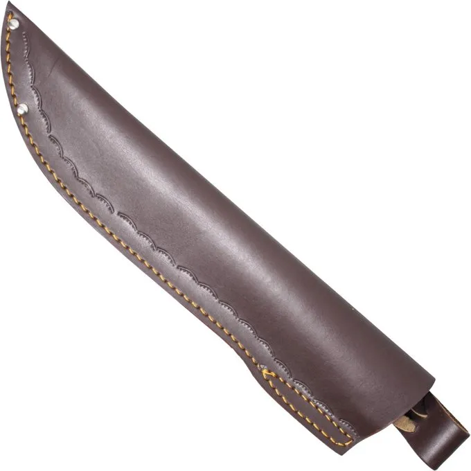 Matériel: acier au carbone, bois, cuir, corne, laiton / / Bord: rasoir / / Longueur: 38 cm / / Longueur de lame: 24 cm / / Livré incluant étui en cuir / / Basé sur un original historique