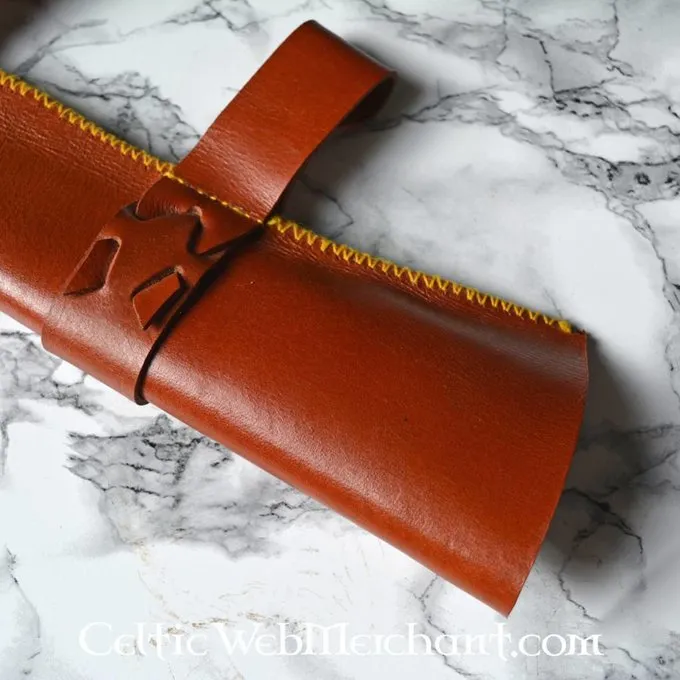 Un seax Viking fait après plusieurs originaux du 8e au 10e siècle de notre ère. Cette seax a une lame d’acier au carbone d’une dureté de 52 à 54 HRC. La lame traverse toute adhérence. Ce seax est livrée avec un fourreau en cuir. Il a une longueur de 44 cm avec une lame de 29 cm.