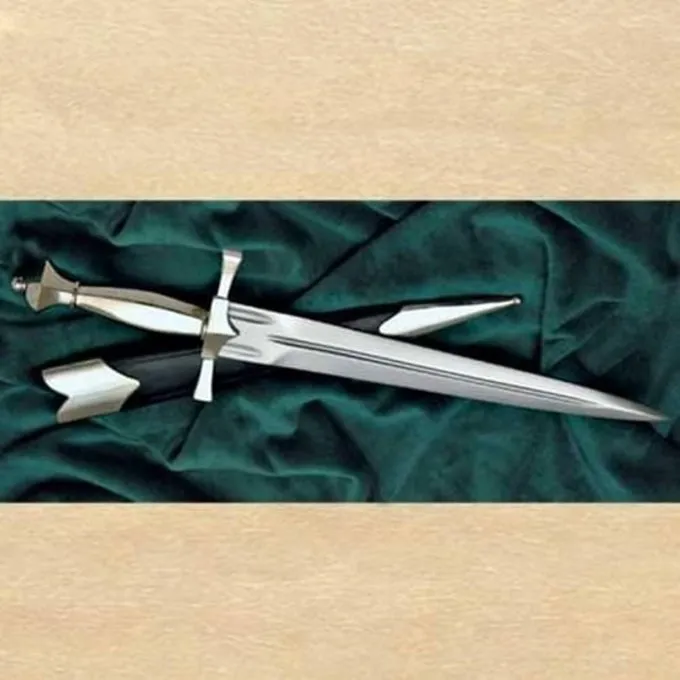 Un beau poignard Renaissance par Windlass Steelcrafts, avec poignée en métal argenté et dont Fourreau. Parfait pour la Renaissance et reconstitution historique collectionneurs de poignards médiévaux et Renaissance. Ce poignard est une réplique exacte d’un original montré dans le livre Dagues européen par Bashford Dean. L’original est fait autour de 1590 et a été porté sur une ceinture pour le combat rapproché sur le champ de bataille. Il était également un symbole de statut et a été porté sur les vêtements historiques pour l’auto-défense. La lame semi-forte est faite d’acier au carbone 1055 avec une dureté de 48-52 HRC et est livrée avec fourreau. Lorsque émoussés, la lame est parfait pour des raisons historiques européennes Arts Martiaux.