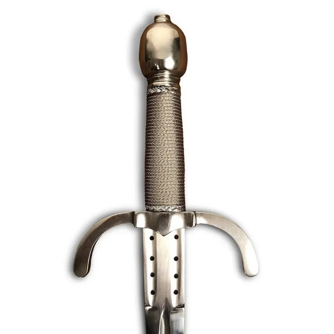 La lame de cette épée peut être émoussée (2,5-3 mm) pour un supplément. Remarque: bien que l’épaisseur soit identique à celle d’une épée de combat, le droit de retour et la garantie expirent lors de l’utilisation du service d’émoussement. N’hésitez pas à nous contacter si vous désirez utiliser le service d’émoussement ou notez à la dernière étape de votre chariot shiopping. Le délai de livraison supplémentaire est d’env. 2 semaines.