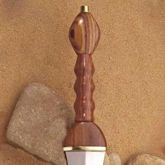 Une belle pugio avec Fourreau par Windlass Steelcrafts, sur la base d’un original au British Museum. Le pugio était un poignard que légionnaires romains utilisés pour le combat rapproché. Ces types de poignards romains ne sont généralement pas portés par des civils, mais les commerçants et autres voyageurs ont porter un pugio sur la route. De cette façon, ils pourraient se protéger contre les barbares sur les bords de l’Empire romain ou contre les voleurs. Cette pugio a une poignée en bois et le fourreau est décoré avec des raccords en laiton et anneaux pour accrocher à votre ceinture. La lame est réalisée en acier au carbone 1055 trempé d’une dureté de 48-52 HRC. Parfait pour une reconstitution de légionnaire romain, un costume romain ou pour le collectionneur d’armes romaines. Lorsque vous blunten le pugio, il convient pour les batailles de reconstitution historique.